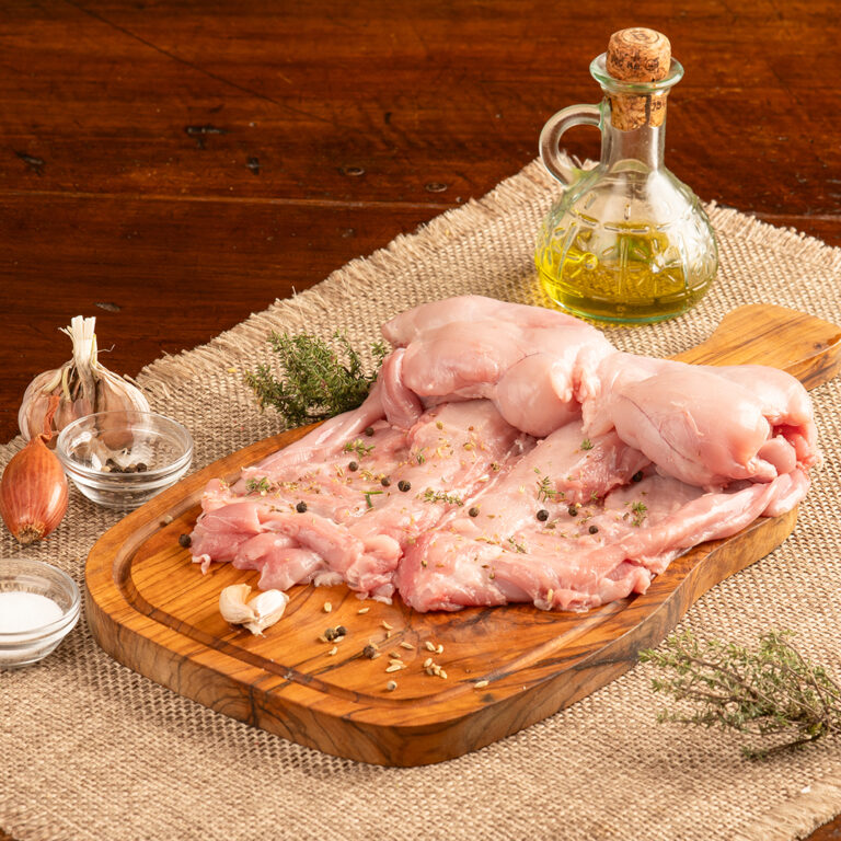 Carne di coniglio arrotolata con ripieno di polpettone di carne macinata di coniglio ed aromi vari.